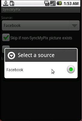 Staying in true geek form, since GSoC ended, I decided to take a “break” and tinker around with some Android development. What you see above, is a screenshot from the fruits of my labour over the past week or so. I call it SyncMyPix.