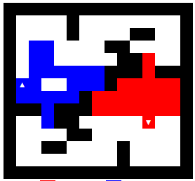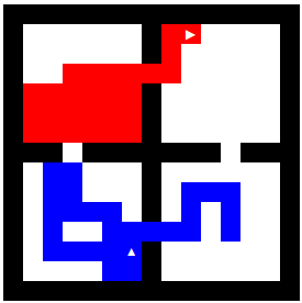 As you can see, the flood fill is essentially a breadth-first search that counts the total number of reachable squares on the map. I run a depth-first search in each of the possible directions from my player’s position. Each search returns a cumulative flood fill count for the associated direction. The direction with the highest count is the best move. In the event of ties, the direction closest to a wall is chosen. This technique works rather well. However, it has its shortcomings.
